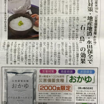 2014年度 茅ヶ崎産災害備蓄食料おかゆ発売中!